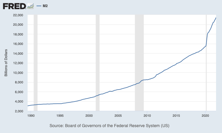 While the new-money effect on prices is compounded by supply chain failures, those failures are themselves driven in part by higher demand fueled by the extra cash in circulation.